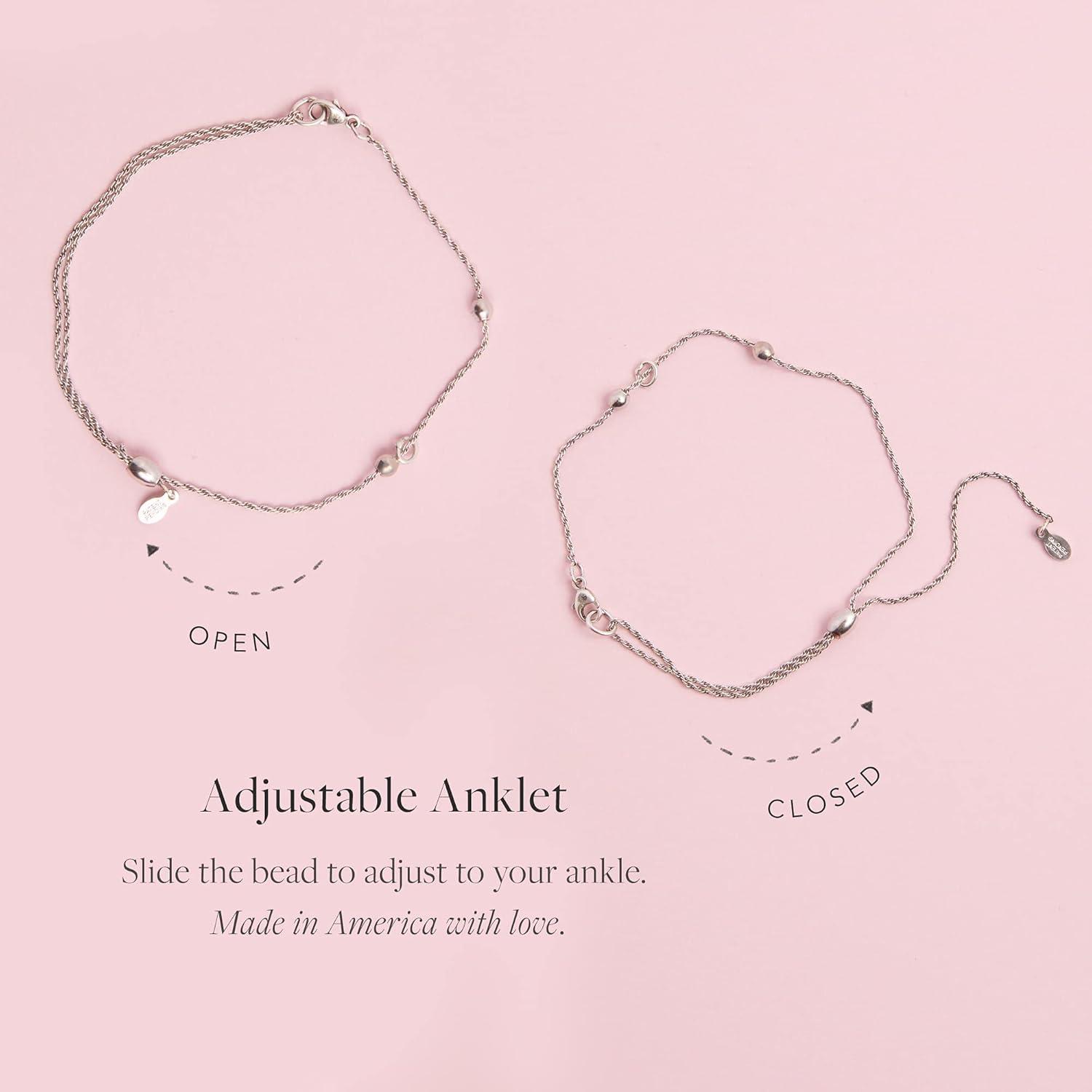 Alex and Ani Adjustable Anklet for Women, Rose Gold(Shiny Silver Finish)