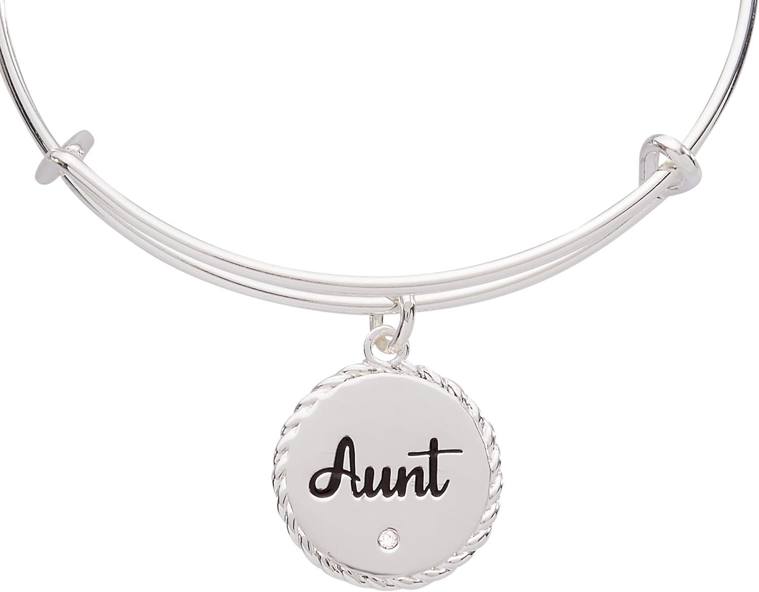 Alex and Ani Aunt Charm Bangle Bracelet for Women(Shiny Silver)