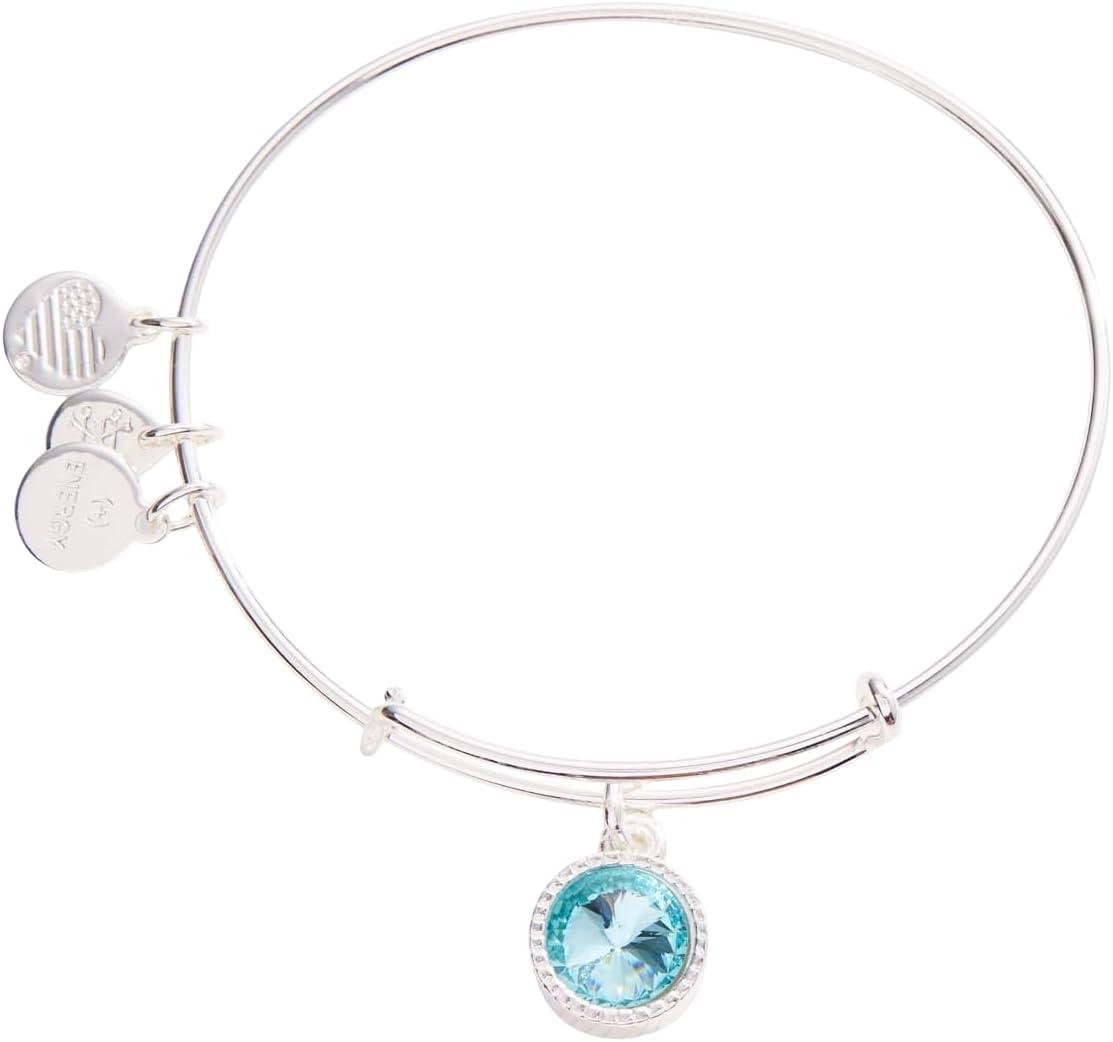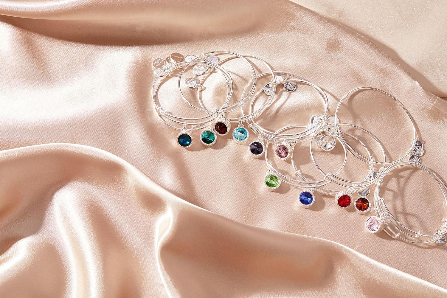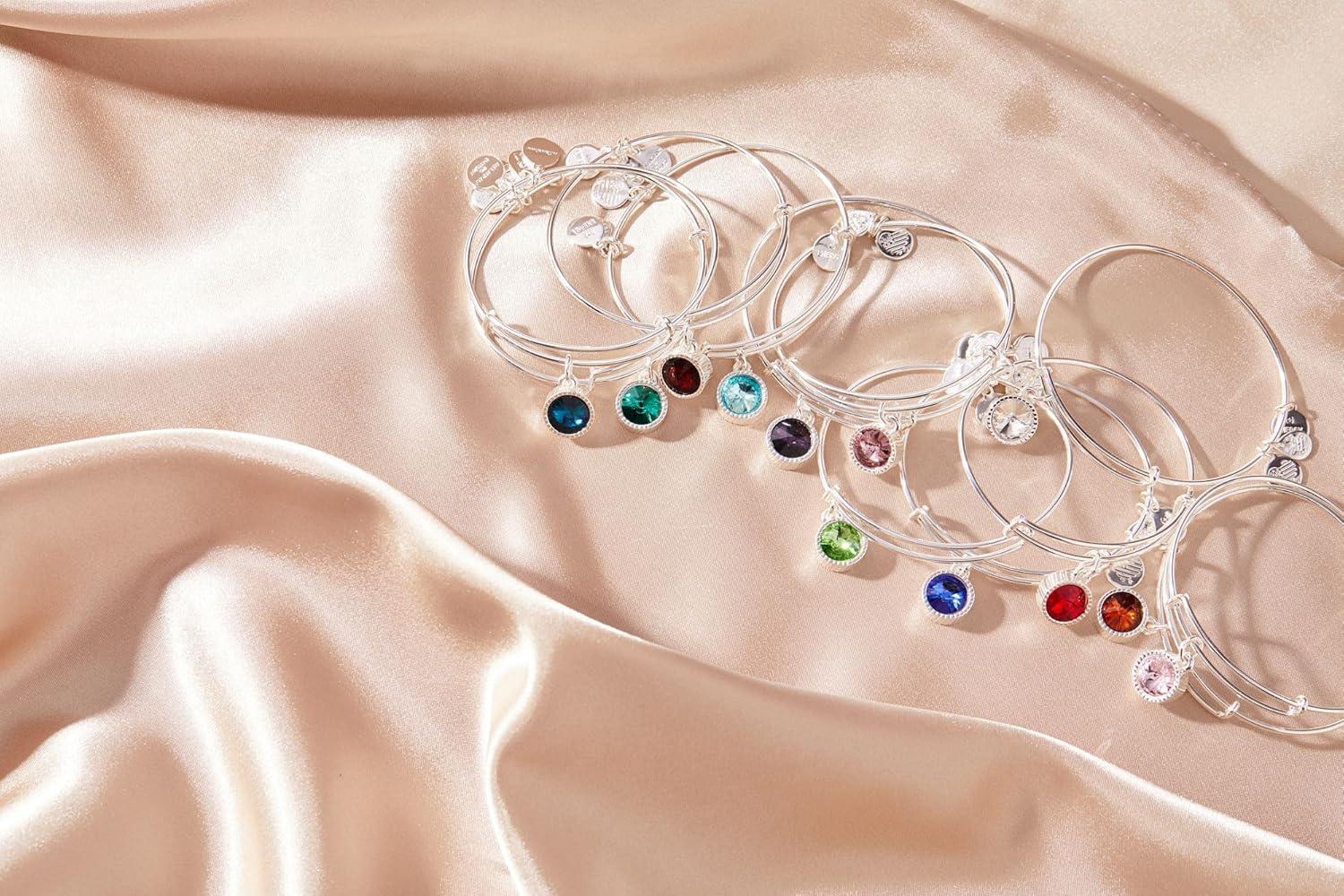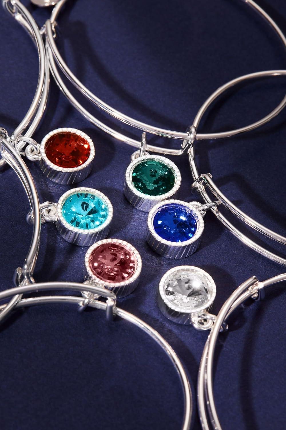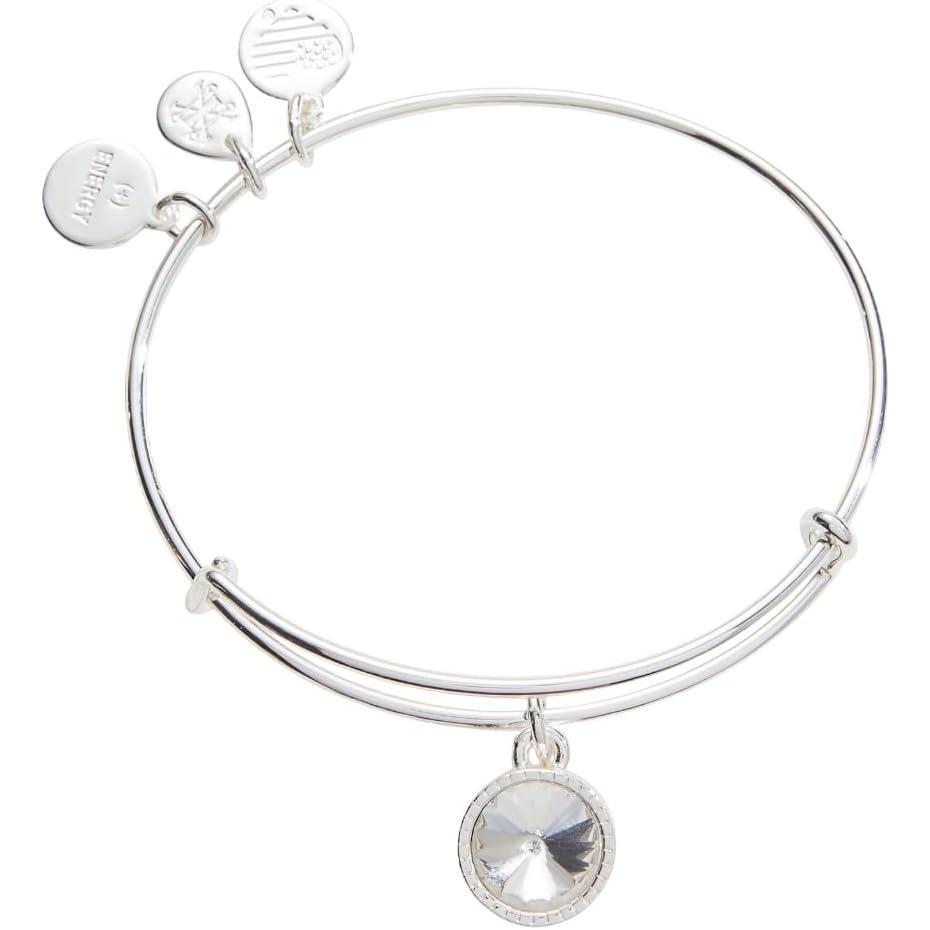 Alex and Ani Birthstones Expandable Bangle for Women, Birthday Crystal Charms, Shiny Finish, 2 to 3.5 in(Shiny Silver)