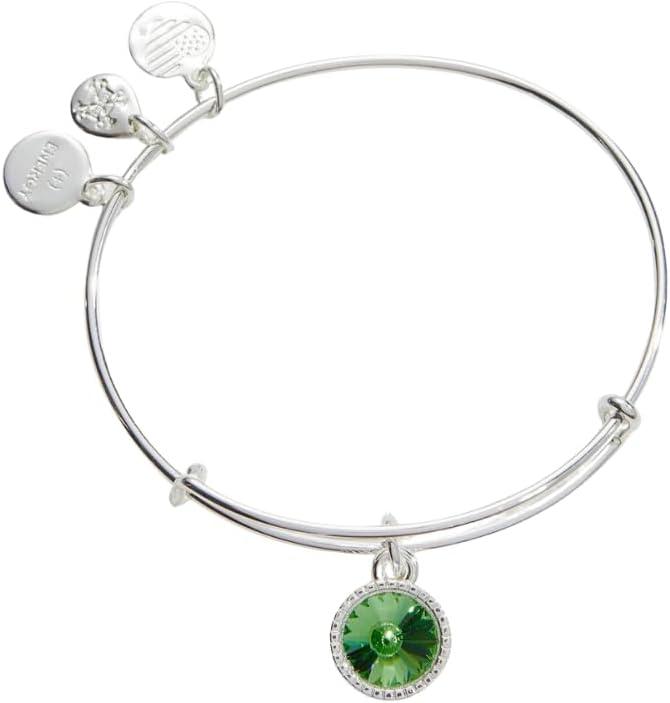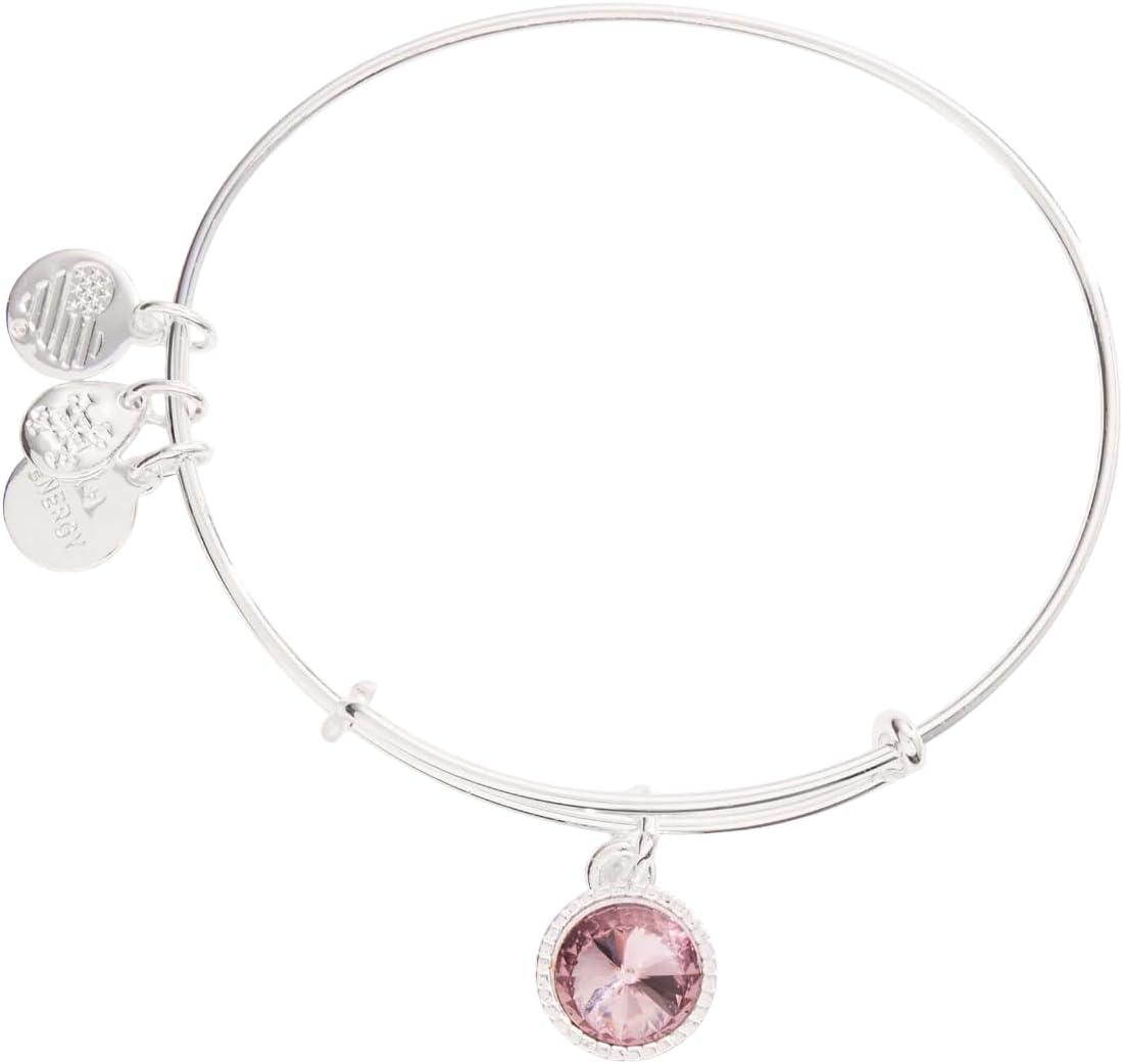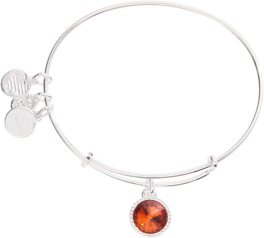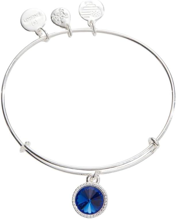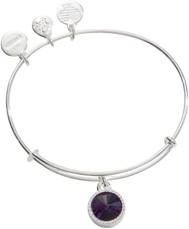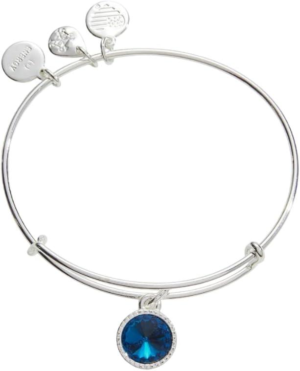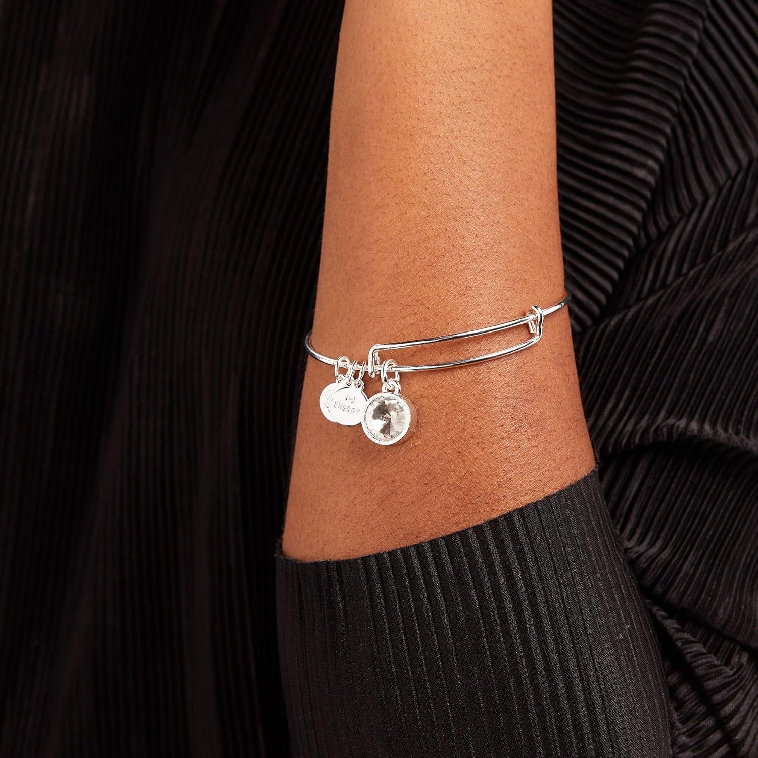 Alex and Ani Birthstones Expandable Bangle for Women, Birthday Crystal Charms, Shiny Finish, 2 to 3.5 in(Shiny Silver)