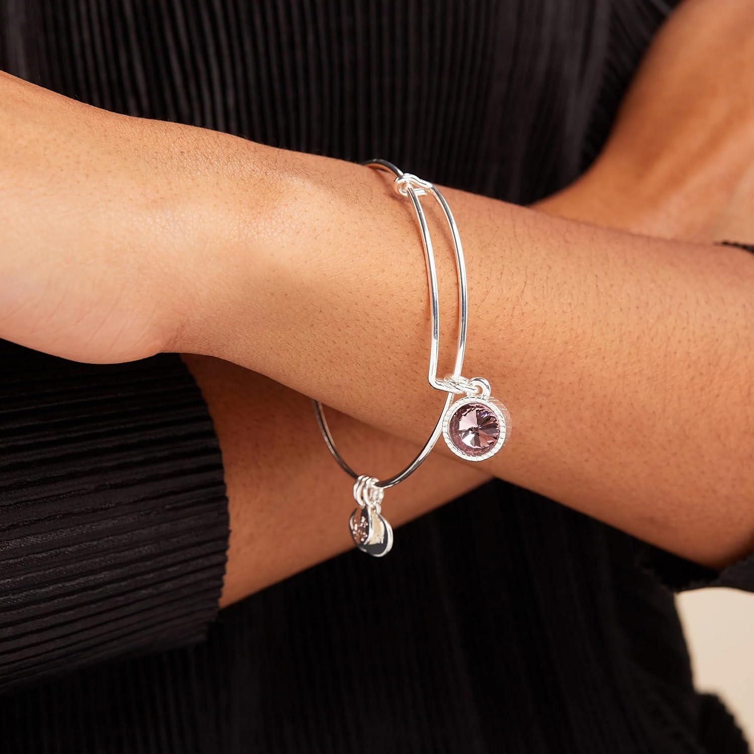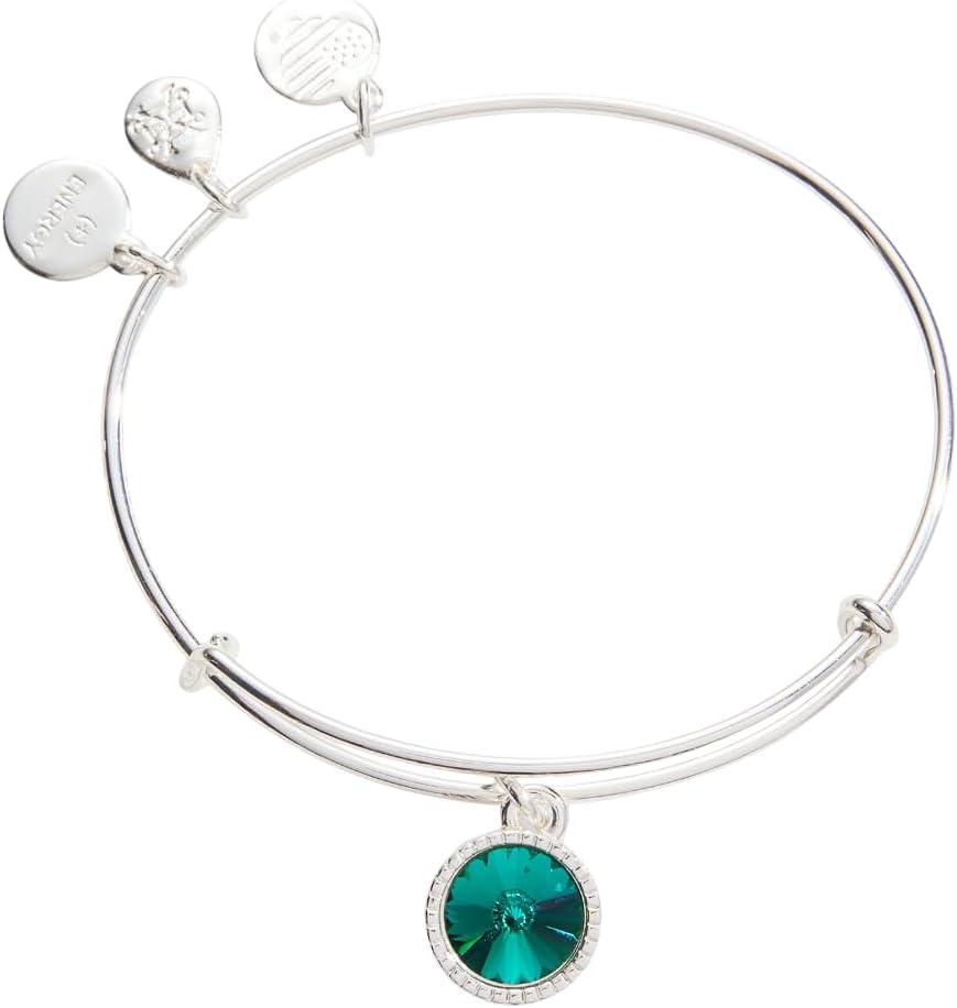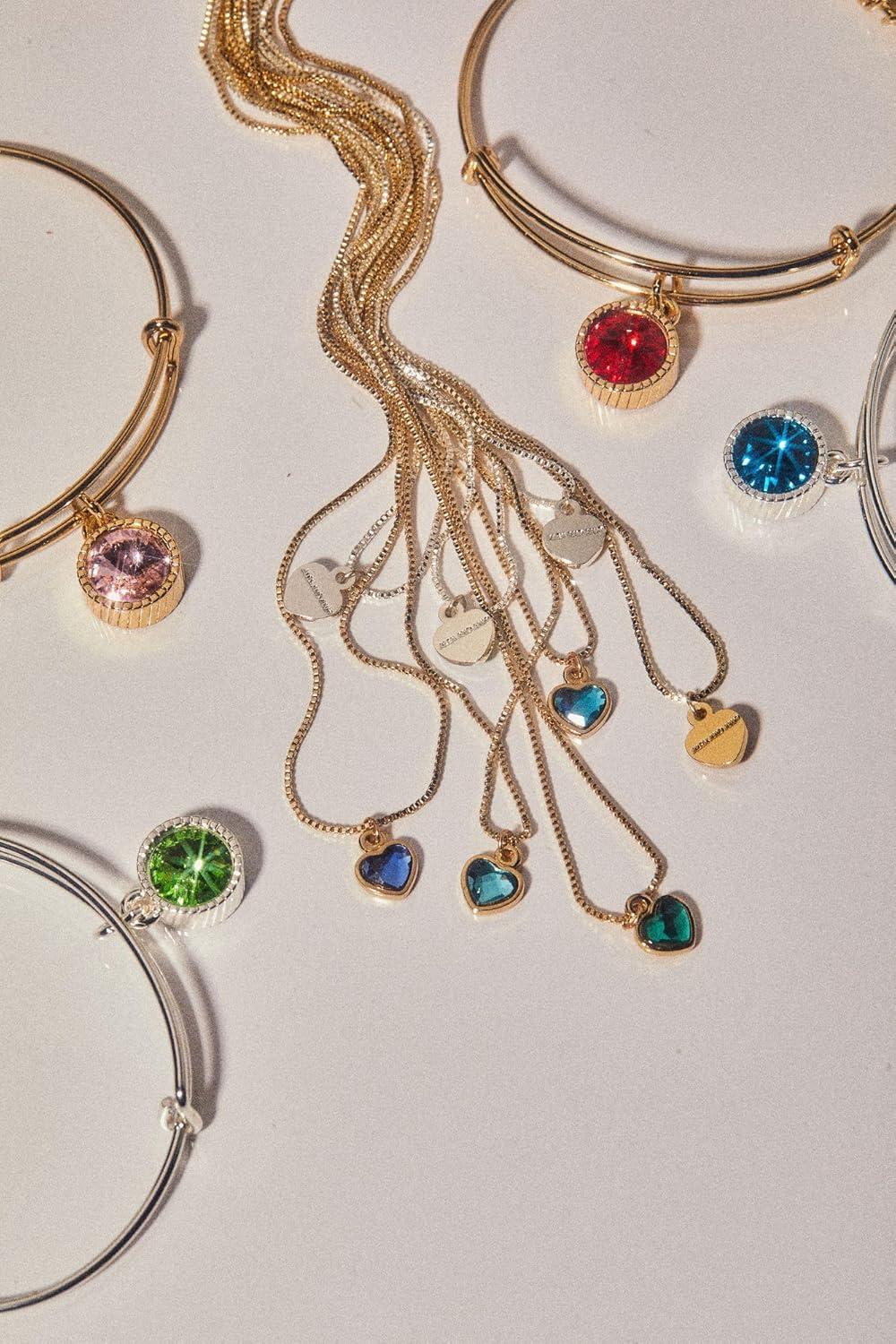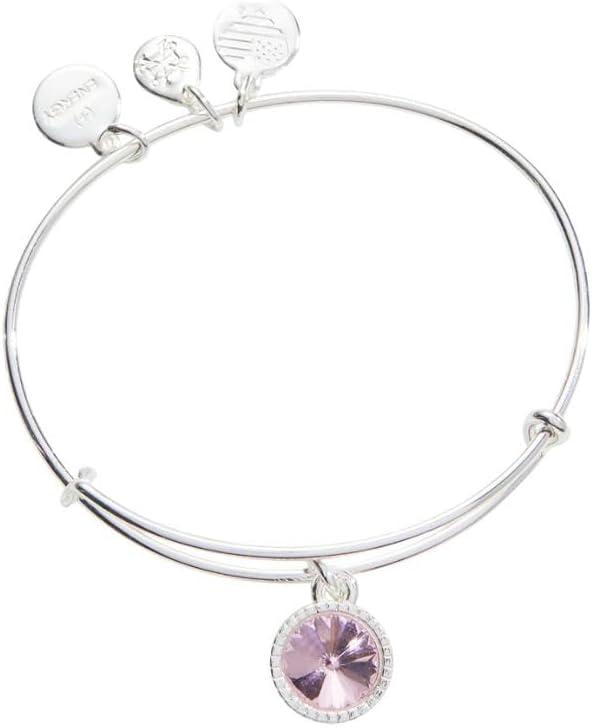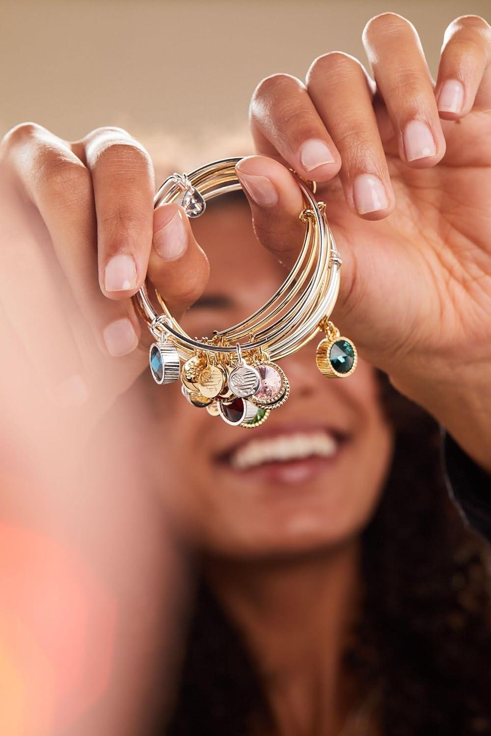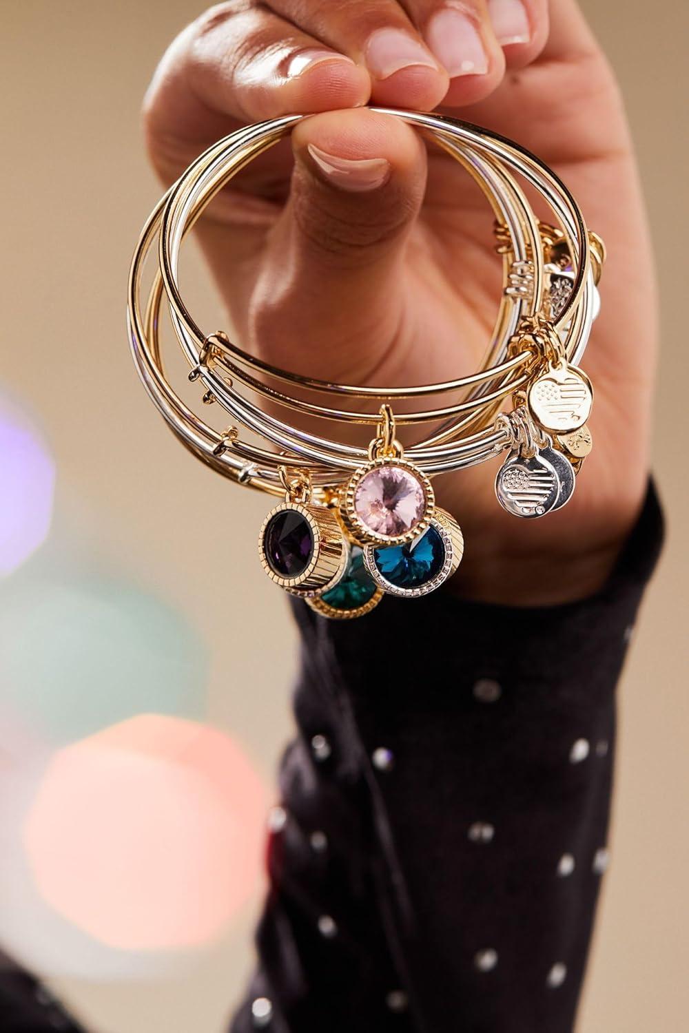 Alex and Ani Birthstones Expandable Bangle for Women, Birthday Crystal Charms, Shiny Finish, 2 to 3.5 in(Shiny Silver)