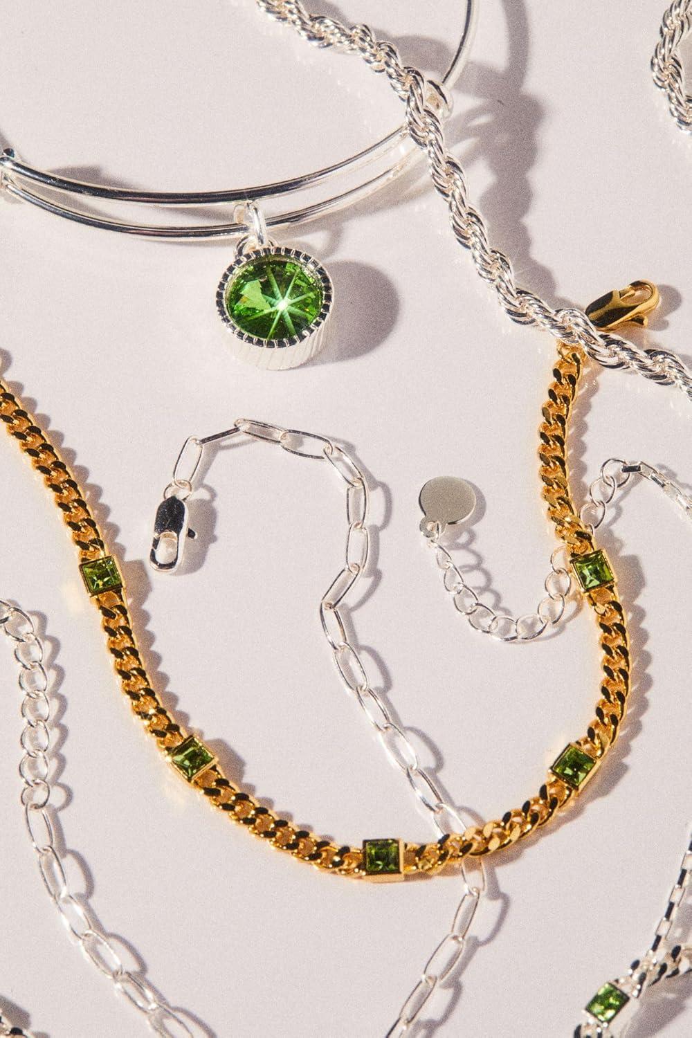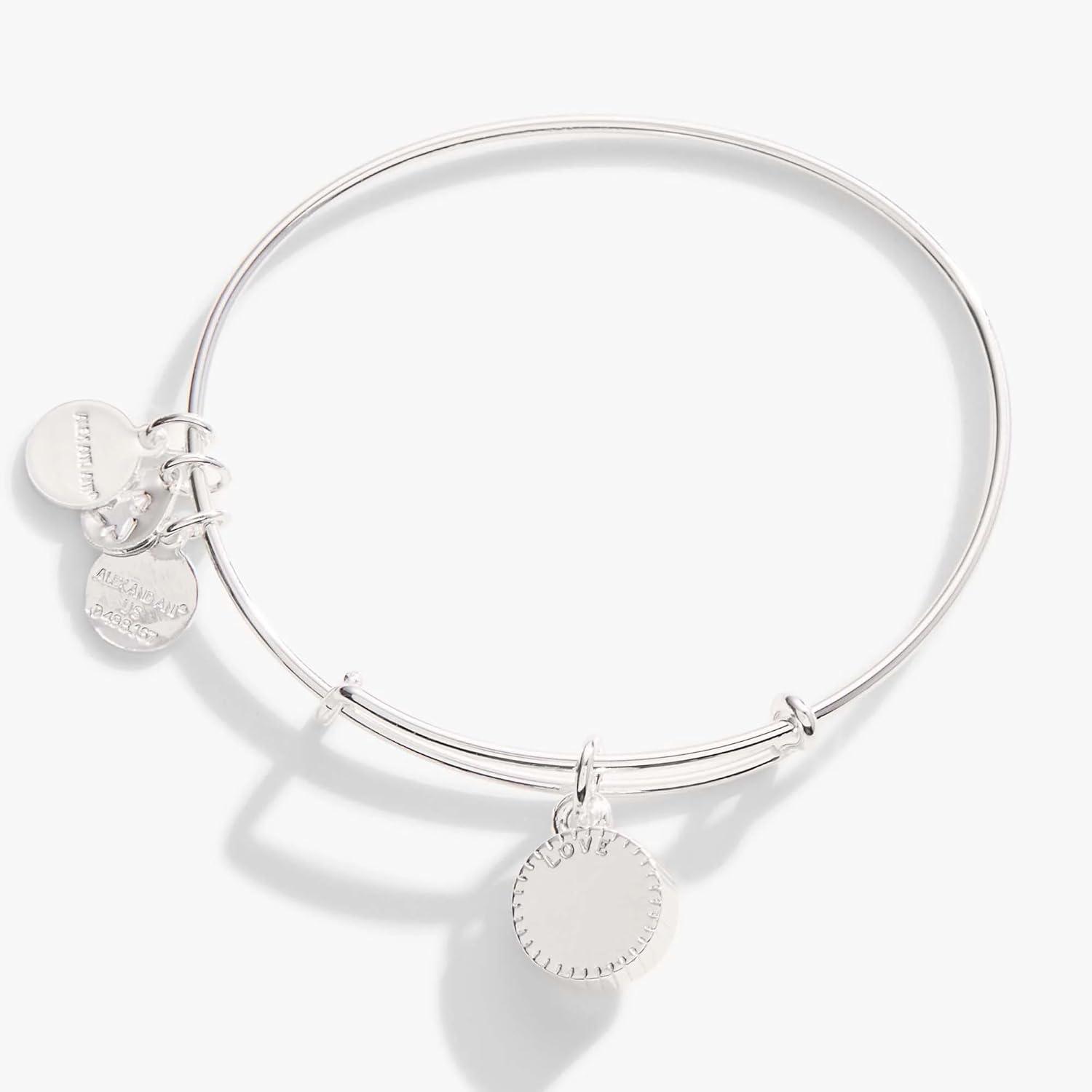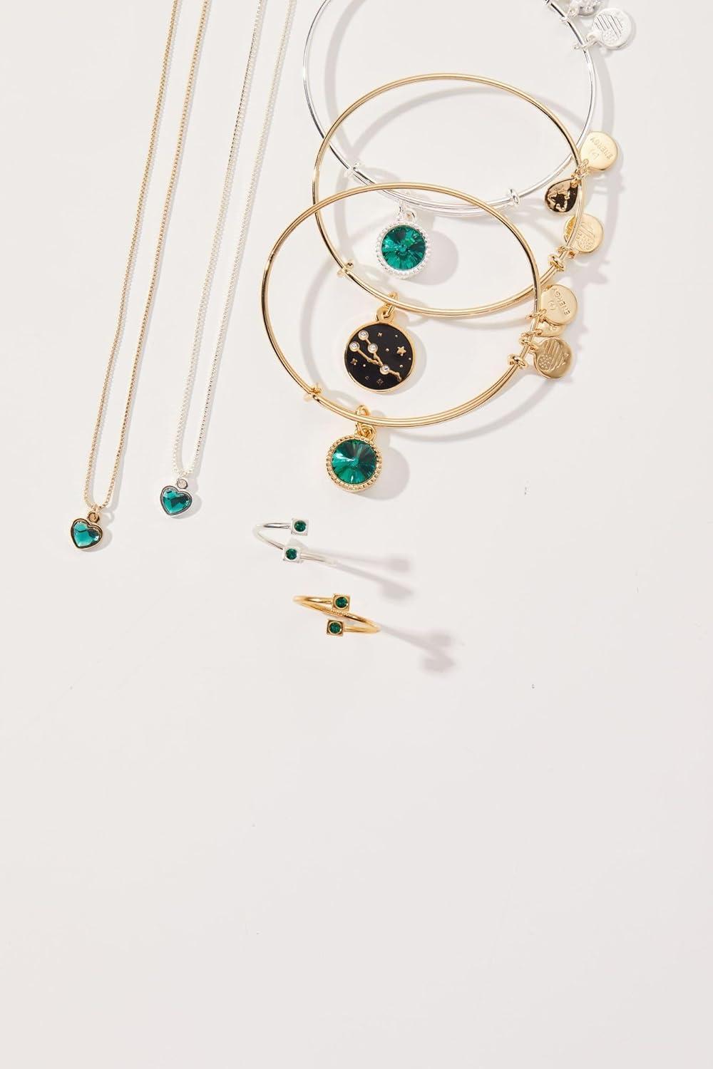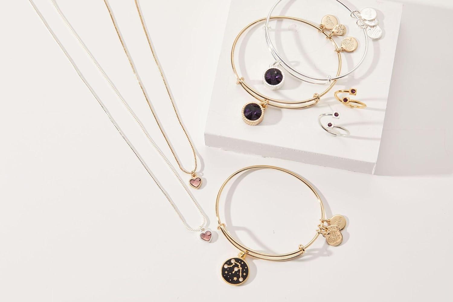 Alex and Ani Birthstones Expandable Bangle for Women, Birthday Crystal Charms, Shiny Finish, 2 to 3.5 in(Shiny Silver)