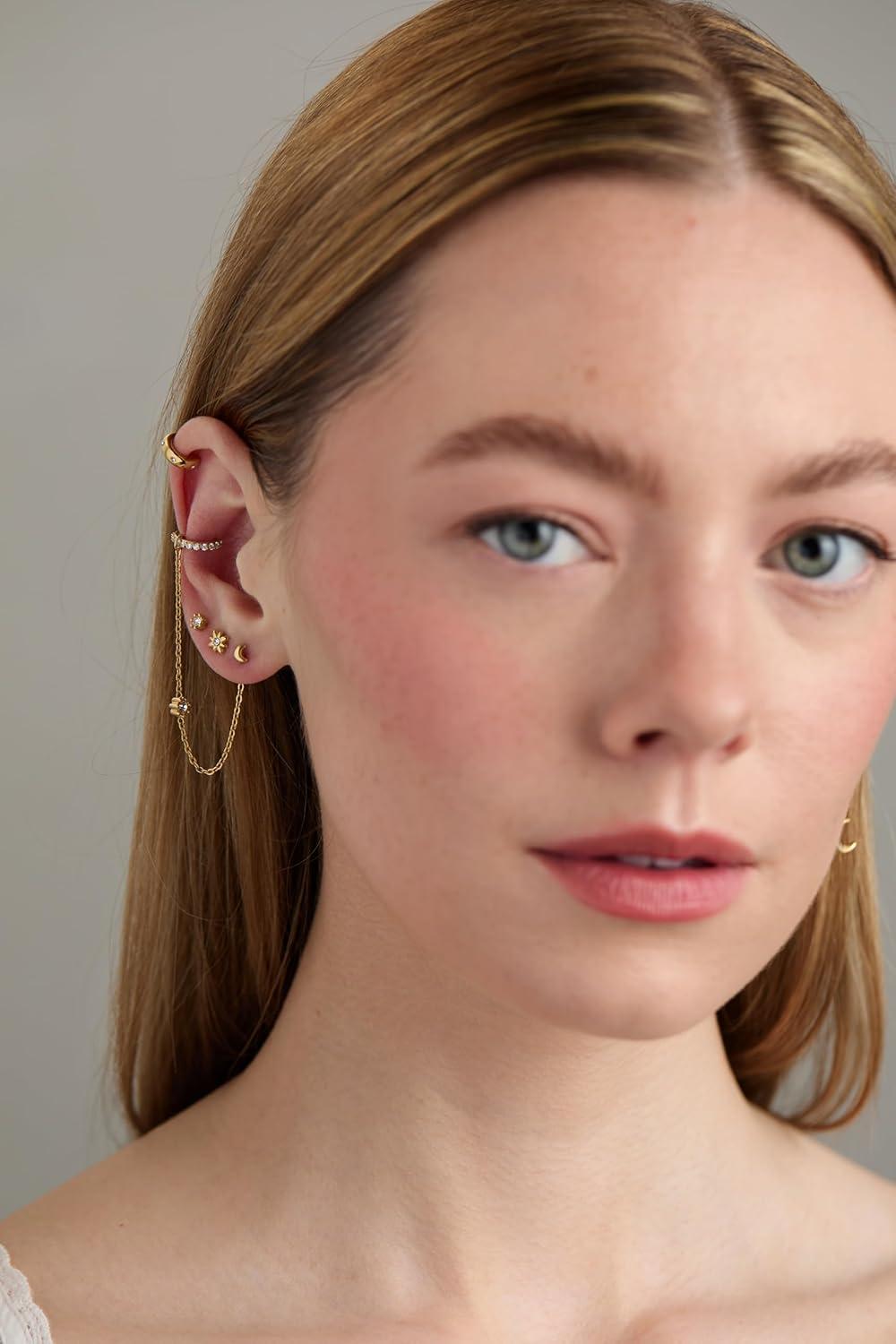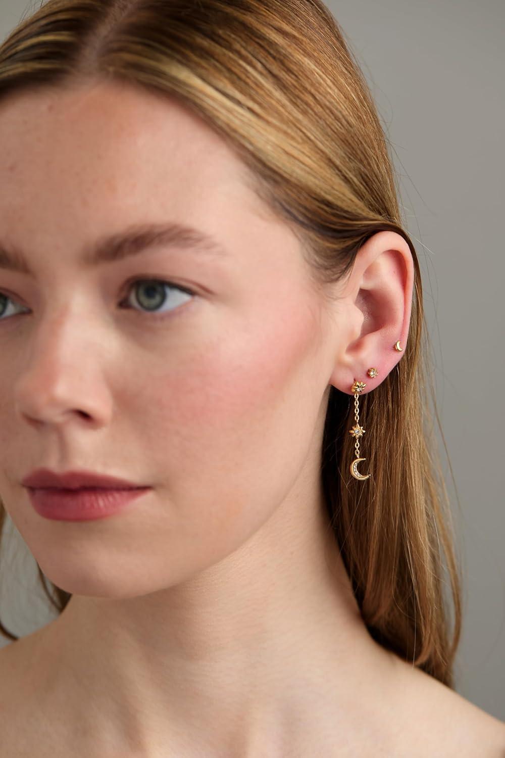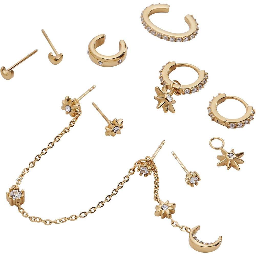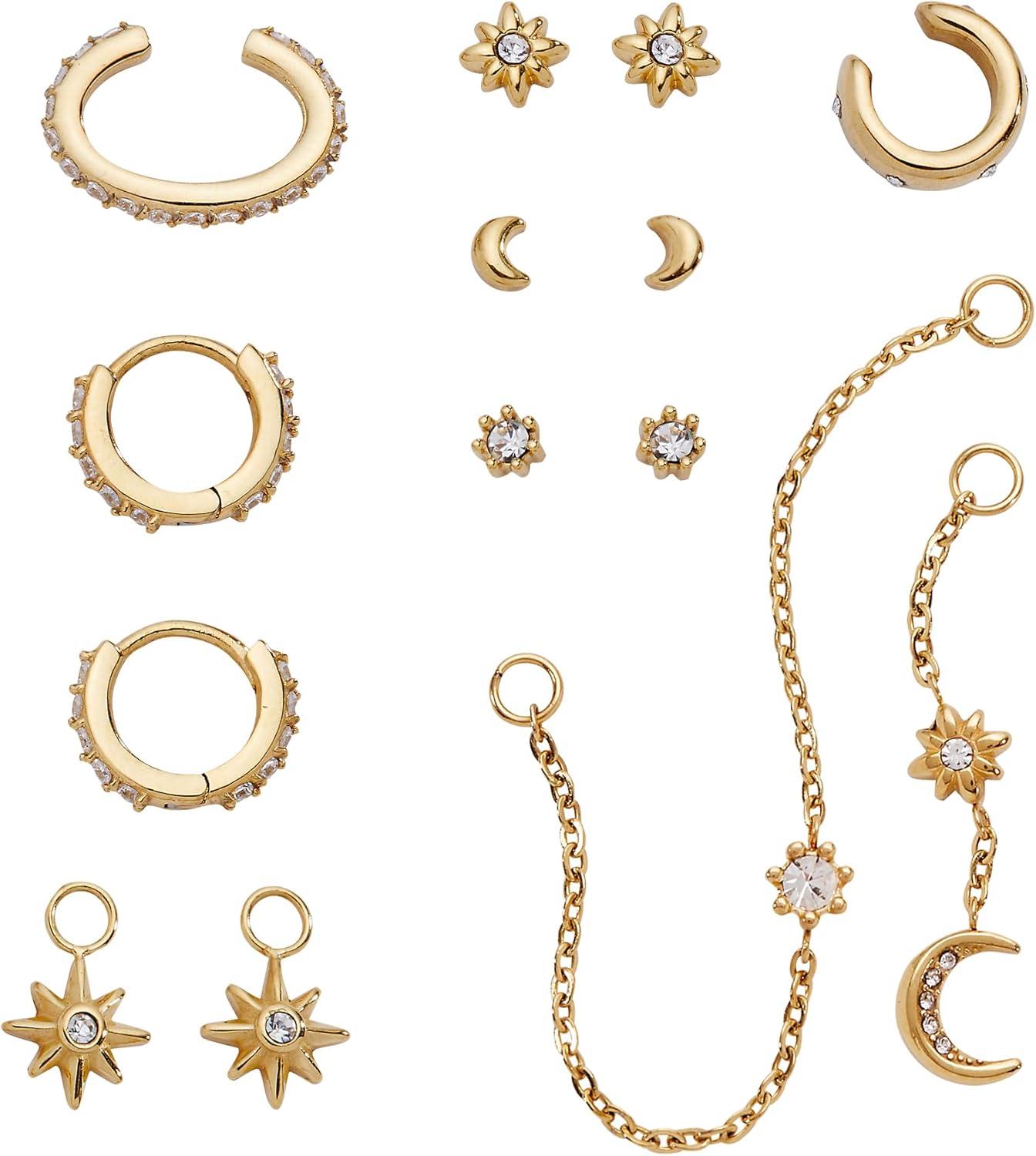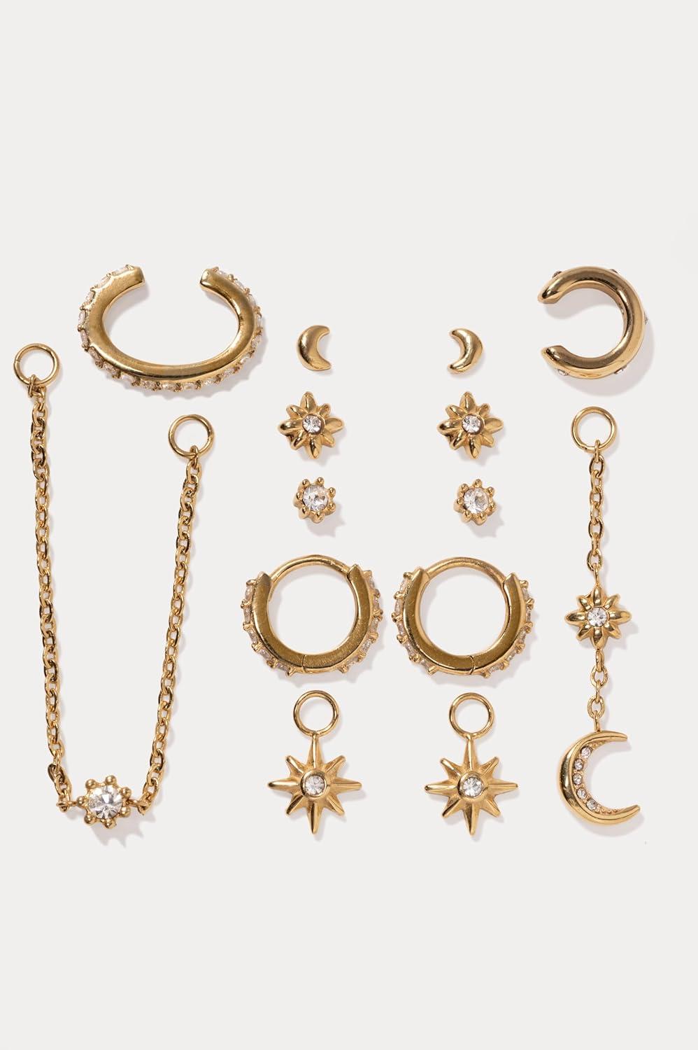 Alex and Ani Celestial Stackable Earring Sets – Interchangeable Studs, Huggies, Cuffs & Charms, Nickel-Free(Stackable 9pc Earring Set (Stainless Gold))