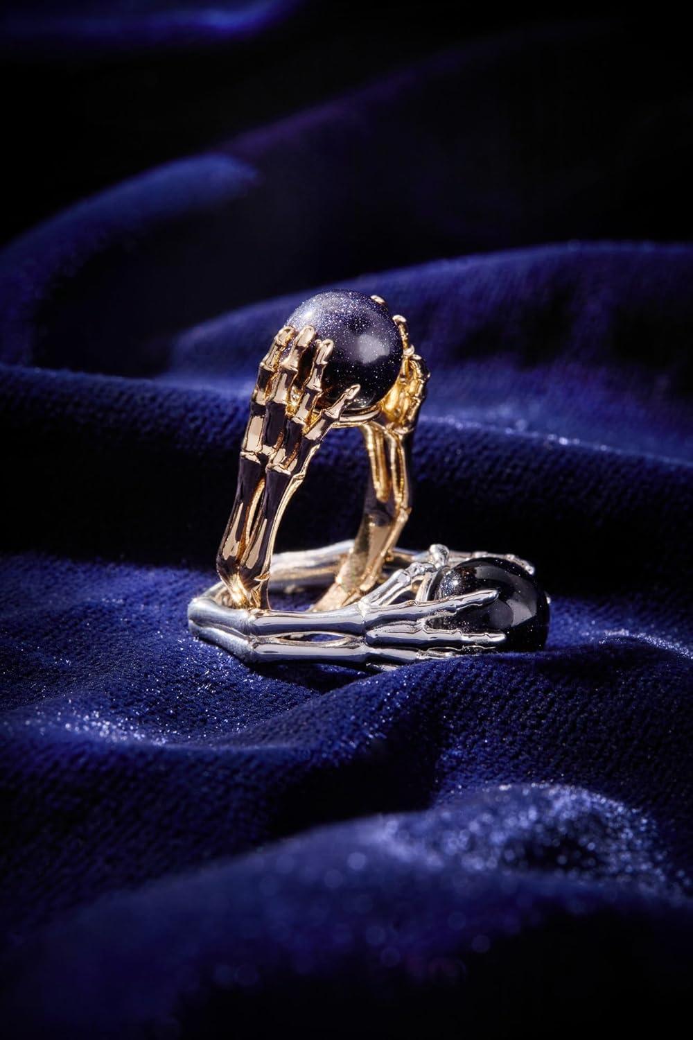 Alex and Ani Crystal Ball Ring – Nickel-Free, Elegant Statement Piece, Ring Size 7, Handmade Gothic Style Chunky Ring(Silver)