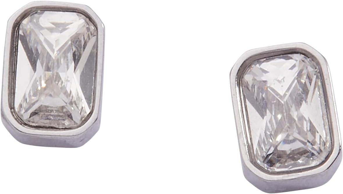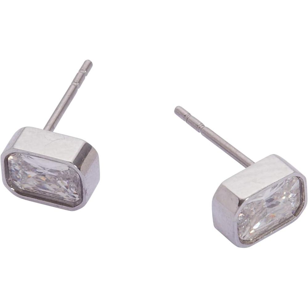 Alex and Ani Emerald-Cut Birthstone Stud Earrings(April (Stainless Silver))