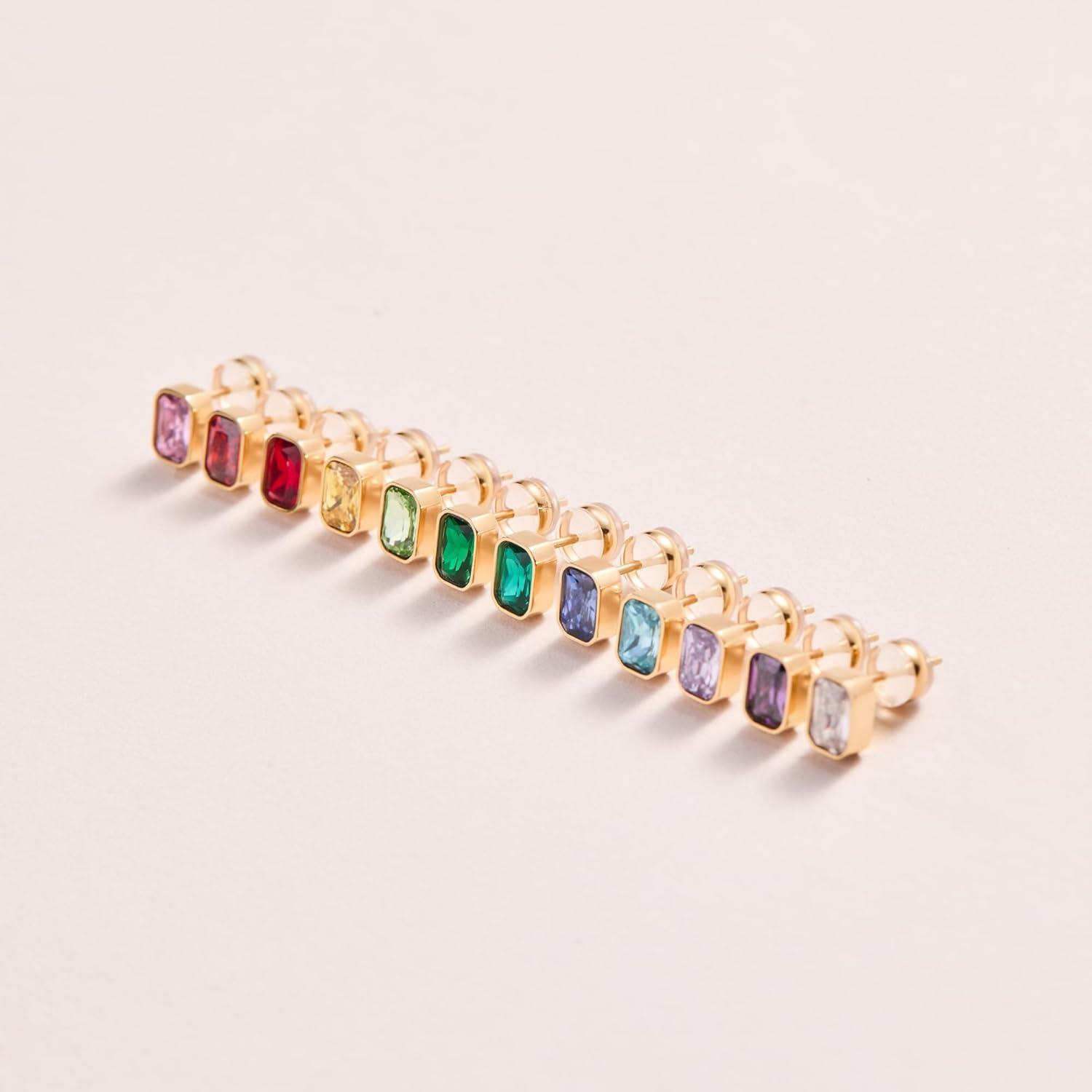 Alex and Ani Emerald-Cut Birthstone Stud Earrings(December (Stainless Gold))