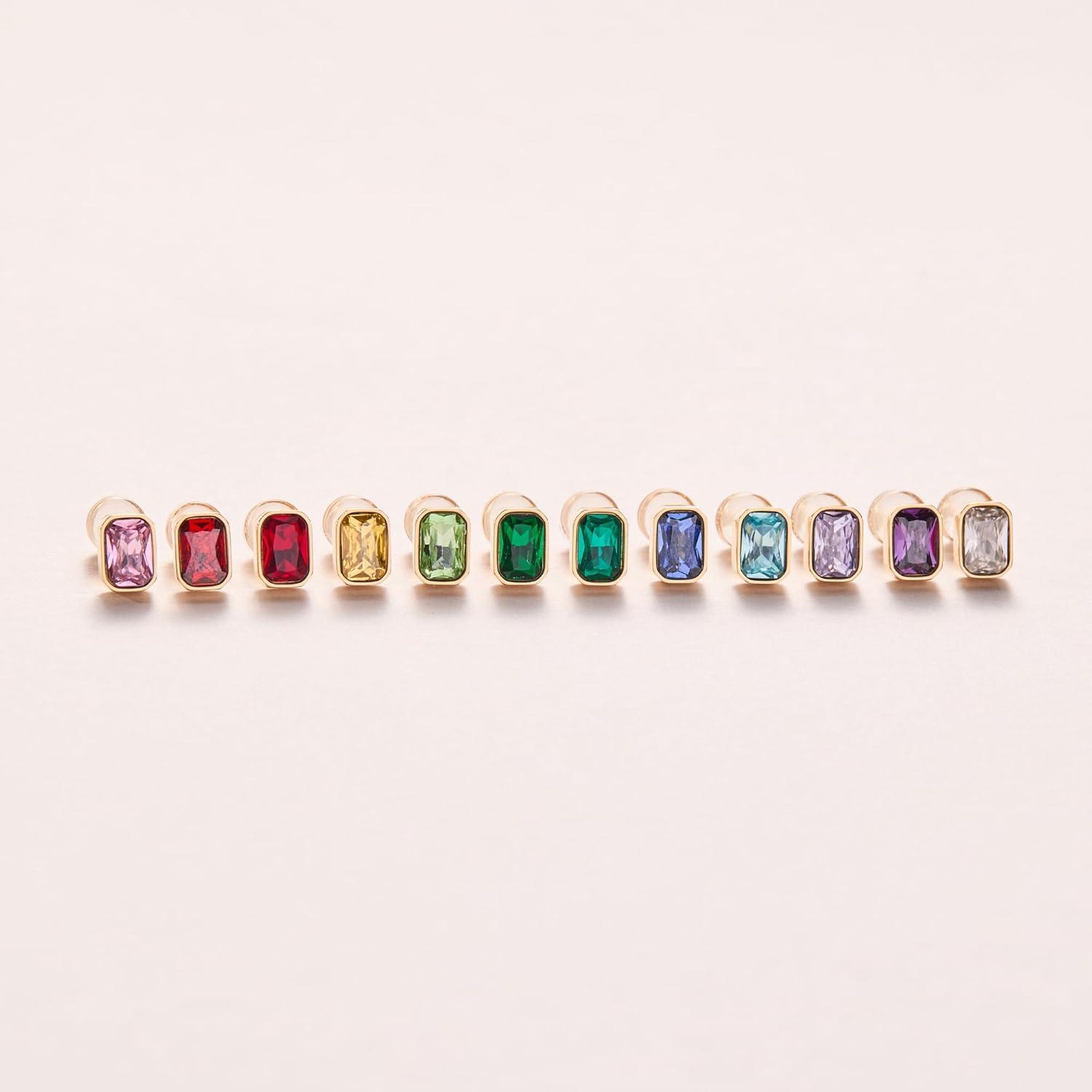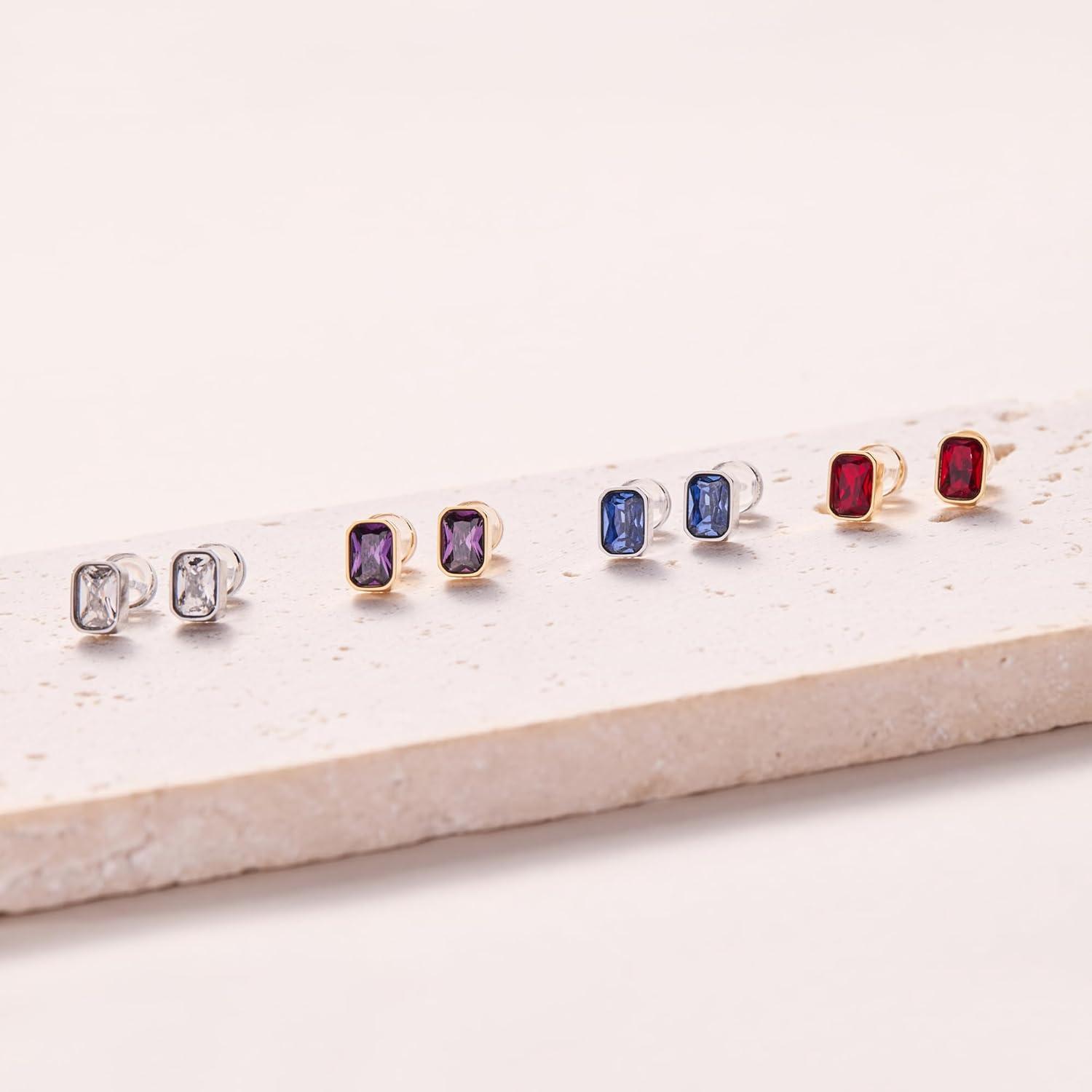 Alex and Ani Emerald-Cut Birthstone Stud Earrings(December (Stainless Silver))