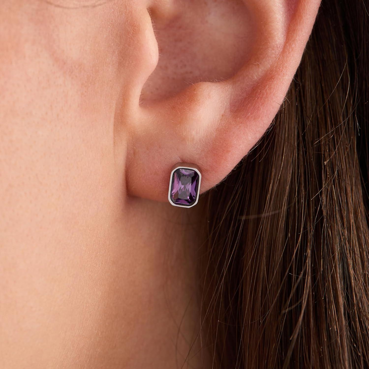 Be the first to review “Alex and Ani Emerald-Cut Birthstone Stud Earrings(February (Stainless Silver))”