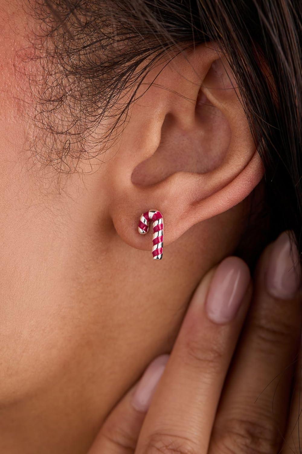 Alex and Ani Holiday Earrings for Women – Nickel-Free, Christmas Jewelry(Candy Cane (Shiny Silver))