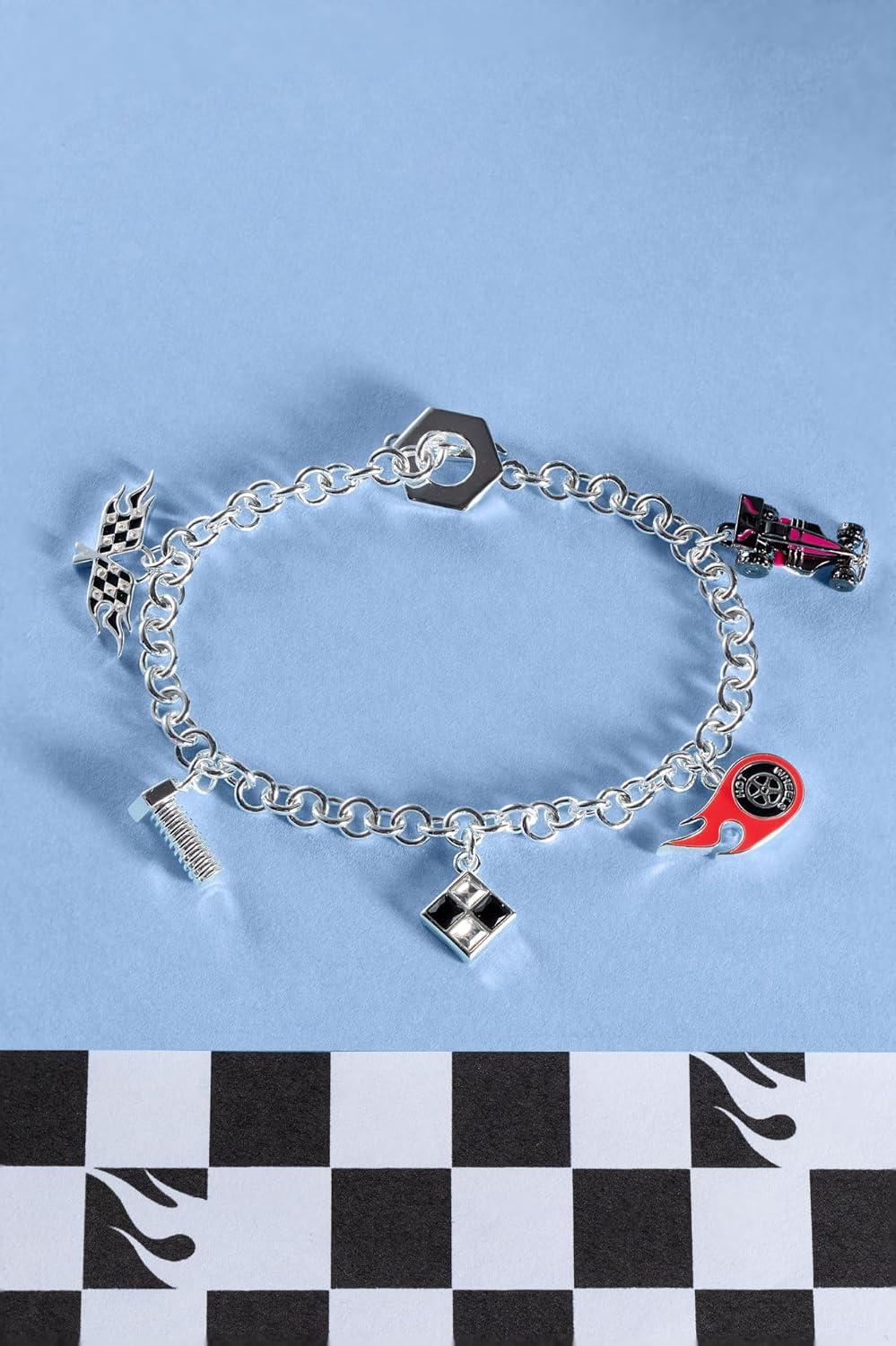 Alex and Ani Hot Wheels™ Bracelets – Moveable Enamel Charms, Checkered Flag Motif, Adjustable Stackable Designs, Ideal Gift for Women(Racecar Toggle Charm Bracelet)