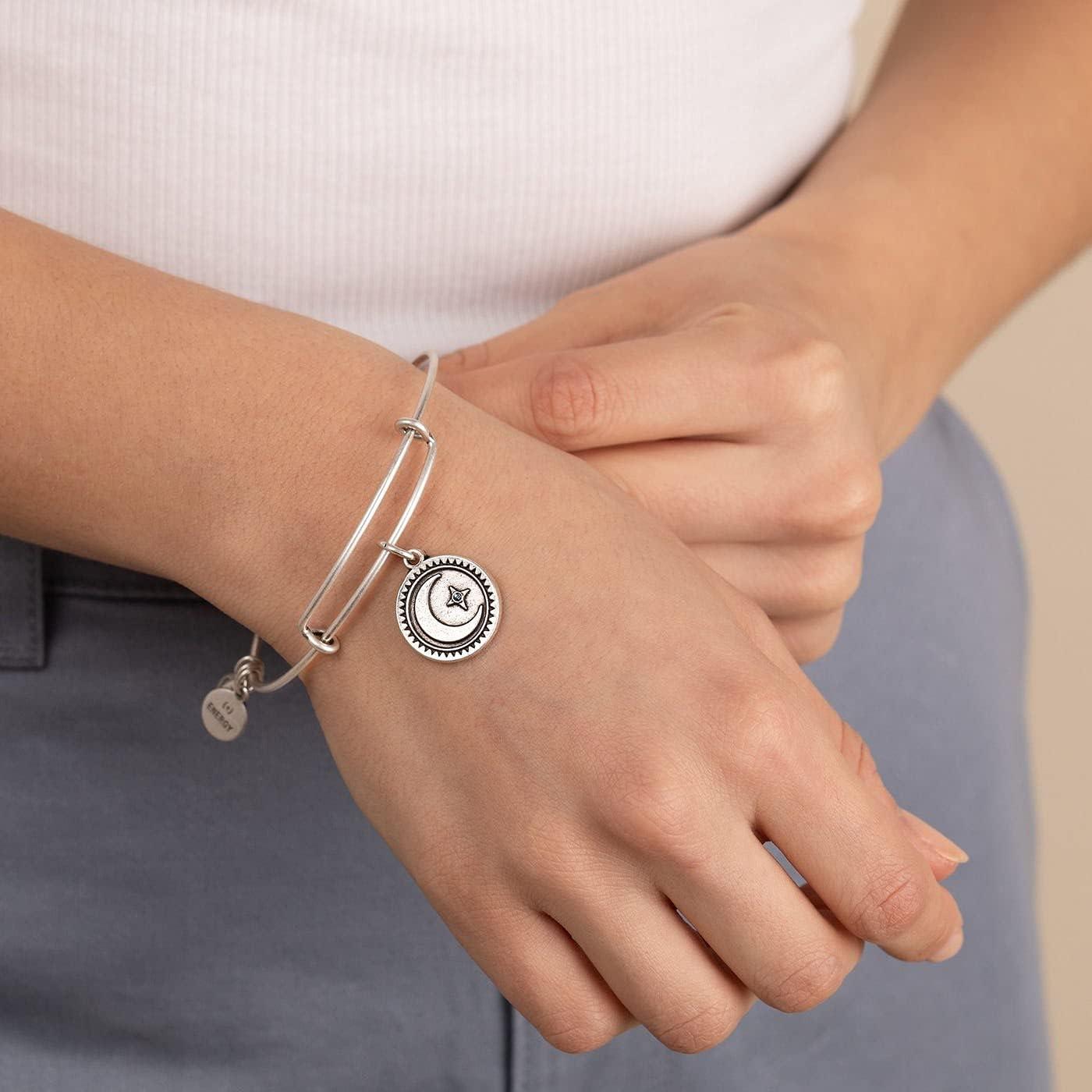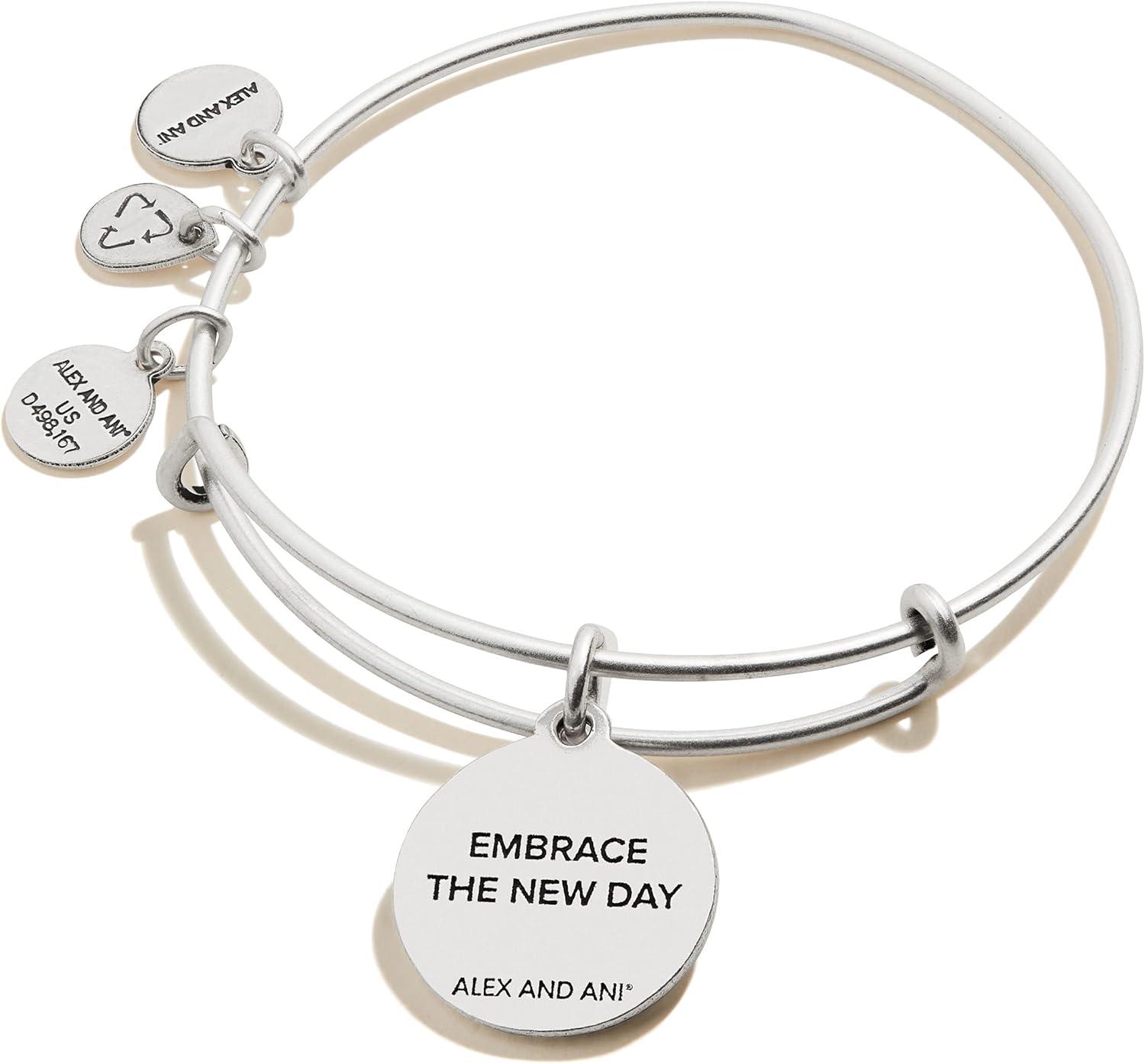 Alex and ANI Path of Symbols Expandable Bangle for Women, New Day Charm, Rafaelian Finish, 2 to 3.5 in(Rafaelian Silver Finish)
