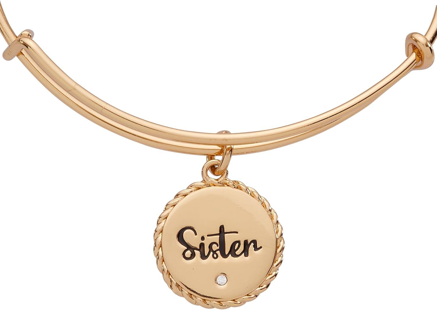 Alex and Ani Sister Charm Bangle Bracelet for Women(Shiny Gold)